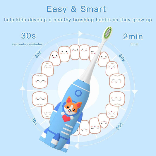 Kids U Shaped Electric Toothbrush with Timer Waterproof Sonic Cleaning Ages 7 to 15