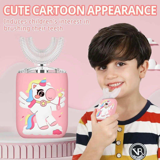 Unicorn kids electric toothbrush with U shaped soft silicone head and smart timer